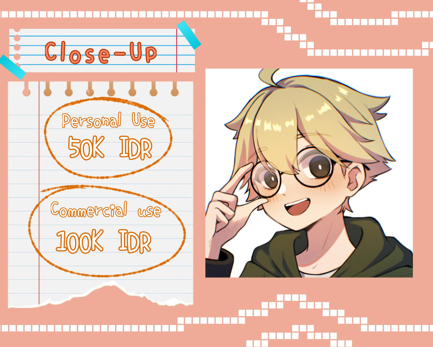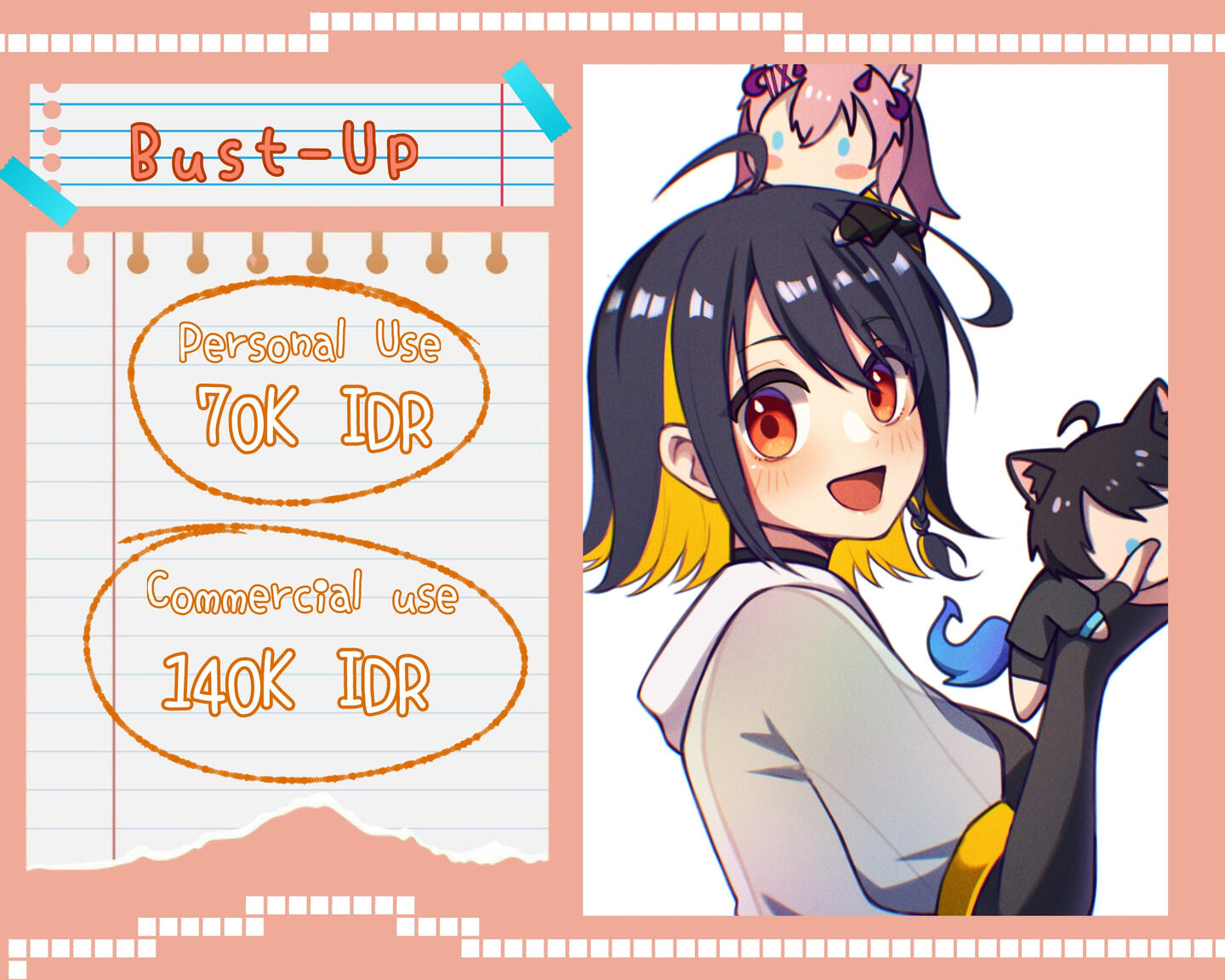 Tolong kirim referensi dengan jelas dan lengkap (Character, outfit, expression, poses)